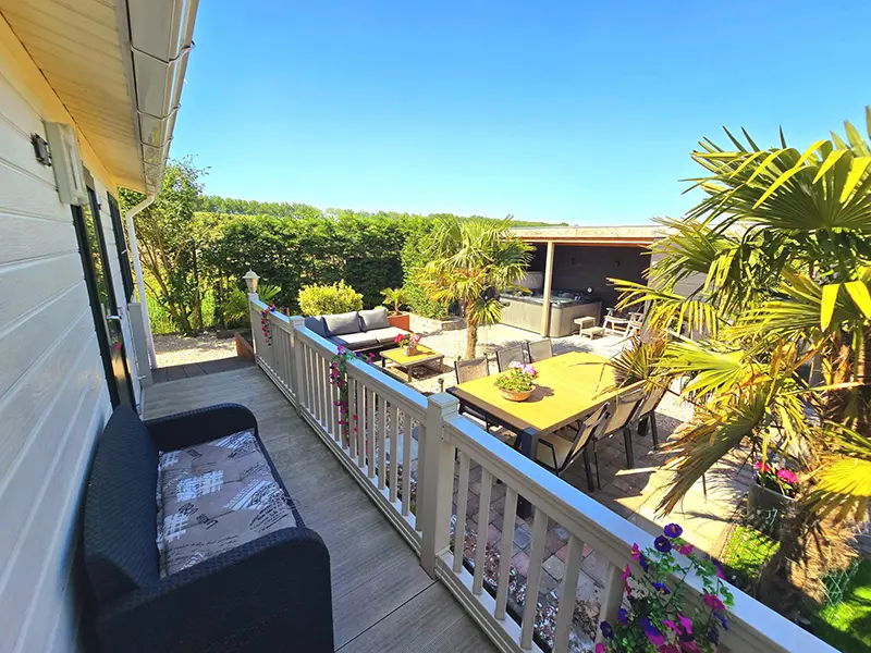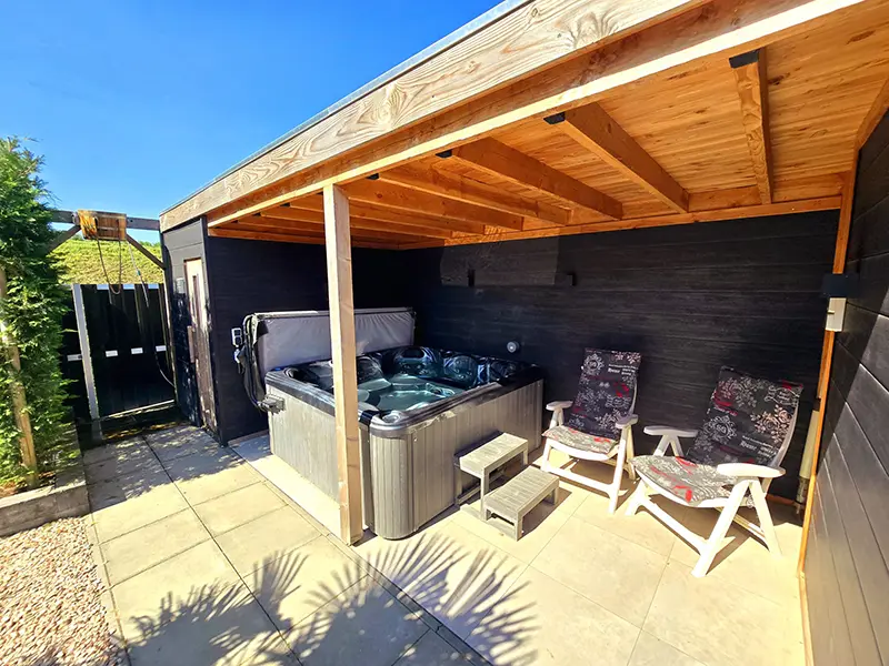 Wellness chalet in Zeeland op loopafstand van zee met jacuzzi en sauna