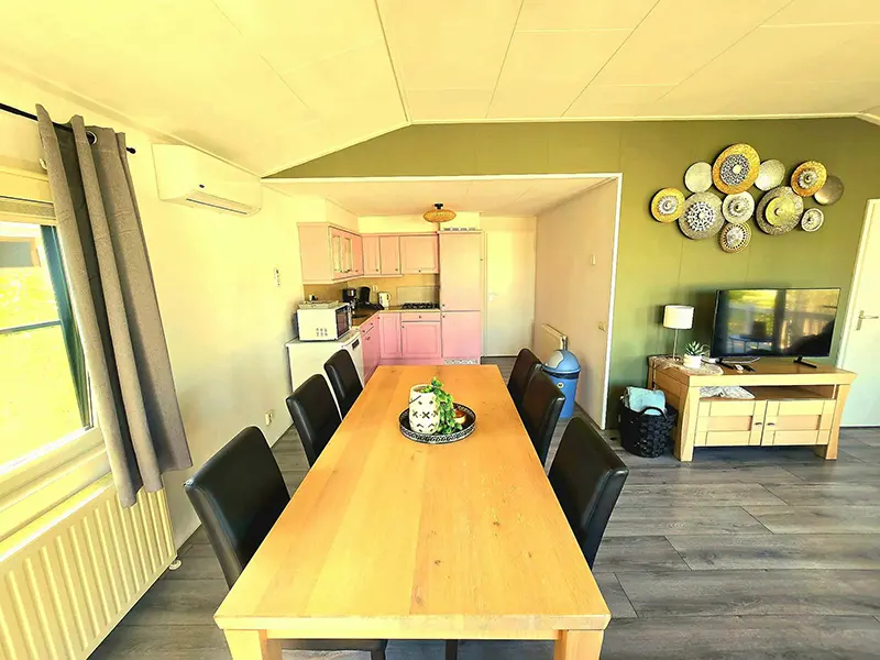 De ruime eettafel is perfect voor lange diners, spelletjesavonden of gezellige gesprekken. Er zijn ook verschillende gezelschapsspellen aanwezig.